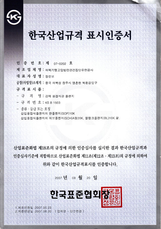 Certificate: ISO9001-2000/KS