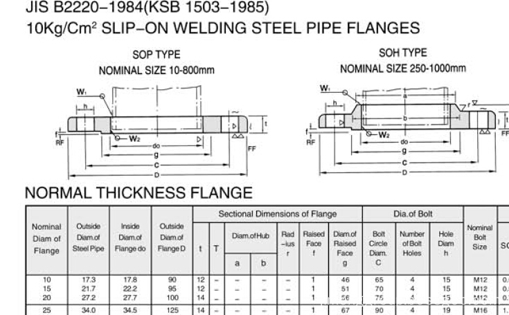 Flate flange is one of the most common type in the flange.Flate welding flange of steel, is suitable for the nominal pressure of not more than 2.5 MPa carbon steel pipe connection. Flat welding flange sealing surface can be made into smooth type, concave and convex type and mortise type 3 kinds. Smooth and flat welding flange are the largest. In the condition of medium is more moderate cases, such as low pressure not to purify the airCarbon steel plate flange is very popular.Sise data of JIS B2220 flange as shown below: